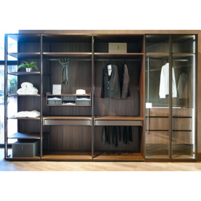 ■ 此系統最大特點就是同一套系統能用於有門片的衣櫃、開放式衣帽間、L型衣櫃、全玻璃展示櫃及拉門衣櫃