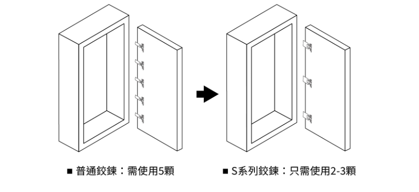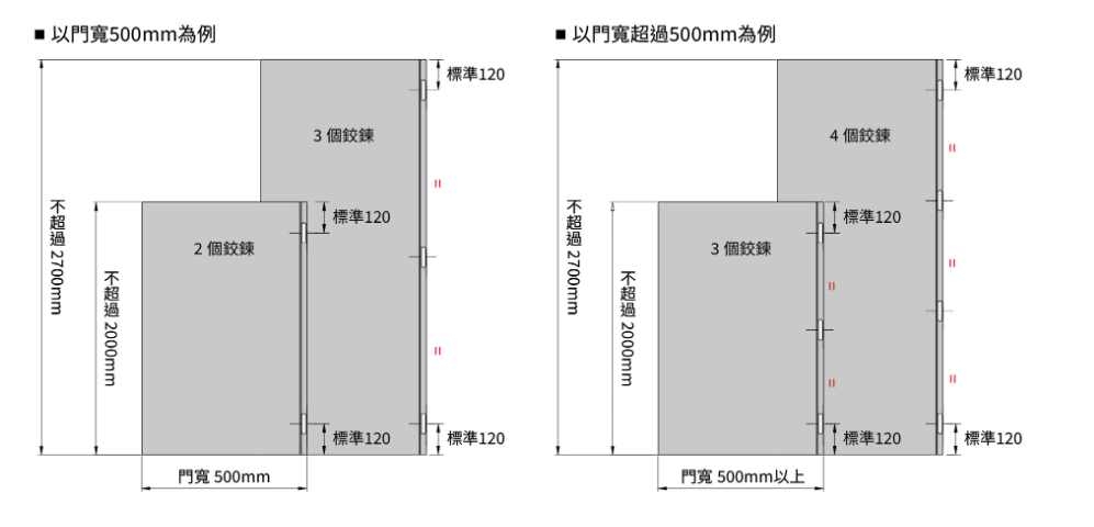 ■ 單顆承重10kg,門高2700mm僅需使用3顆鉸鍊