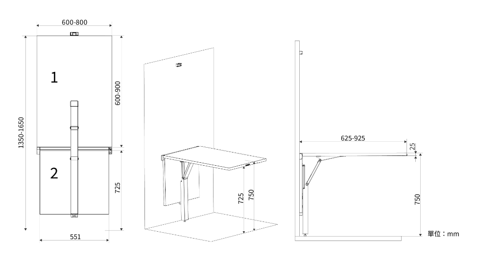 商品特色 ■ 節省空間設計,需要時拉出使用 ■ 單手操作,即可平穩緩降滑落 ■ 安全解除,幼童無法觸及 ■ 無桌腳設計,活動自如 ■ 如檯面高度需加高,可另購支撐墊 商品規格 ■ 適用桌板寬度:600-800mm ■ 適用桌板長度:600-900mm ■ 適用桌板厚度:25mm ■ 承重:最大30kg ■ 顏色:黑色 / 五金內容物 / / 尺寸圖 / / 加購配件 / ■ 支撐墊